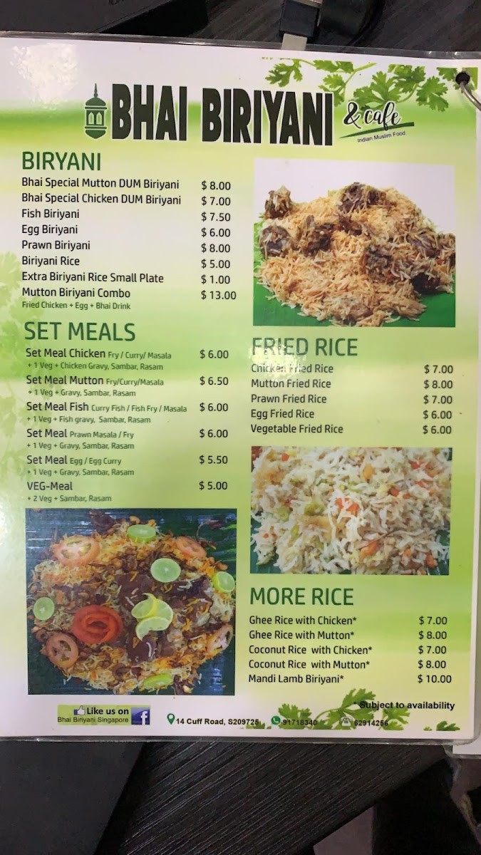 Bhai Biriyani Pte Ltd Menu